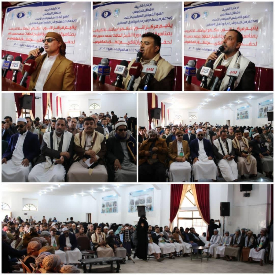 بارك الشيخ صالح الخولاني وكيل وزارة الارشاد وشئون الحج والعمرة نجاح هذة الدورة دورة احد شيوخ العلم وحفاظ القران الكريم والقراءات السبع الشيخ الحافظ المرحوم محمد حسين عامر وقال كم نحن سعداء اليوم بإختتام هذة الدورة التحفيظية لكتاب الله الذي نظمها مركز النور للمكفوفين للعدد من طلاب المركز
