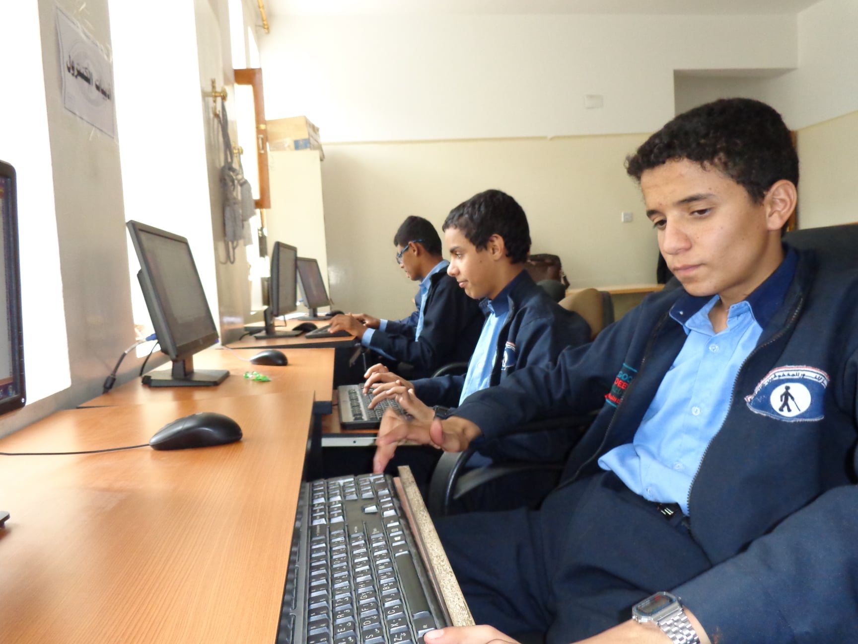 يتوفر في المركز معمل الحاسوب بالبرامج الناطقة التي أجدها برنامجًا جديدًا من 14 جهاز حاسوب ، ويتم تدريب الطلاب المكفوفين على لفكرة قبل المدربين والمعلمين ،