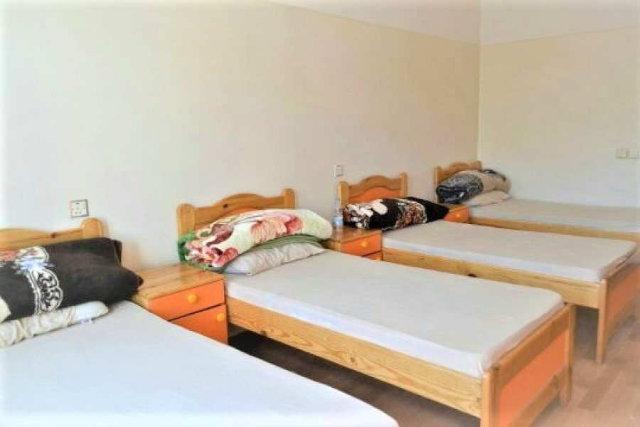 يتكون مبنى السكن من ثلاثة أدوار ويحتوي على ثمانين غرفة مجهزة بالأسرة والفرش والبطانيات ودواليب الملابس